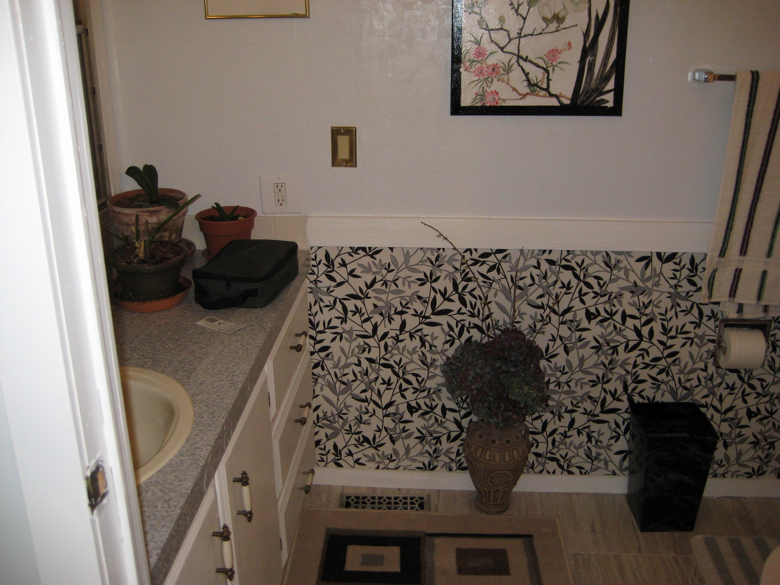 Guest Bathroom.  New floors, new paint, new design, new everything…..