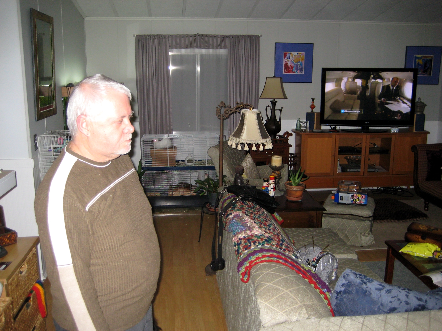 The hero of the day…. my amazing husband surveying the living room…. One of our next projects…. New floors… But, will wait until spring… In the meantime, he has, however, re-upholstered all the furniture in this room….