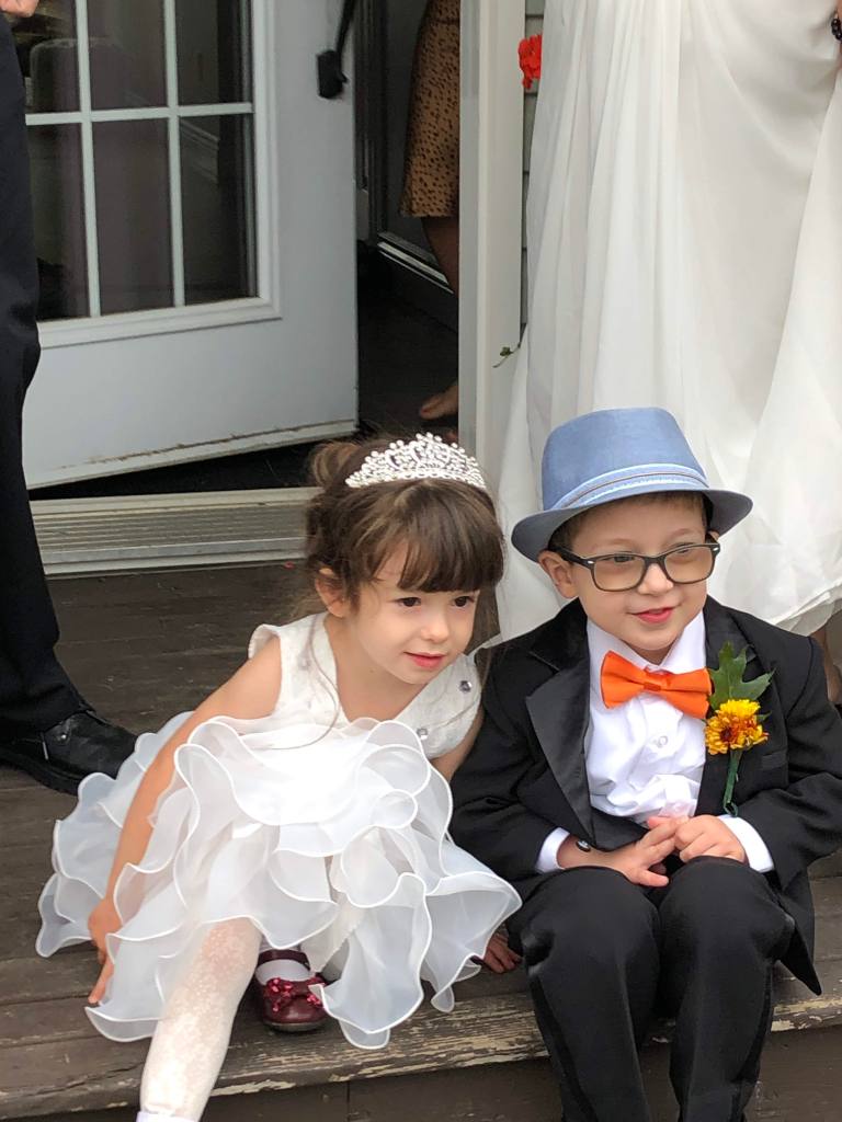 Flower Girl and Ring Bearer – just rockin’ the hat and glasses