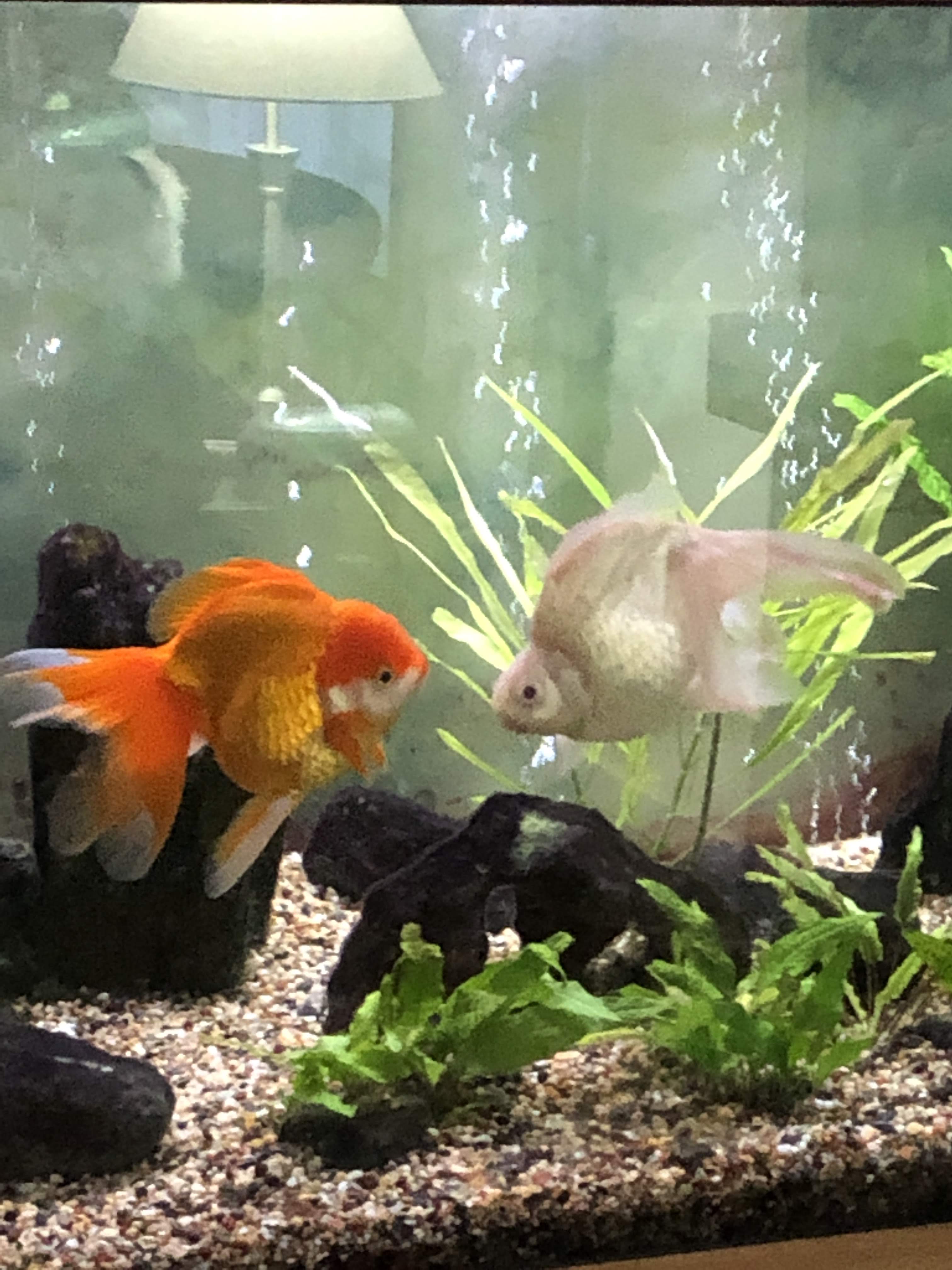 After the debacle of the four big comet goldfish constantly harassing our big female goldfish…. they were banished to our pond in the backyard where they are THRIVING.
