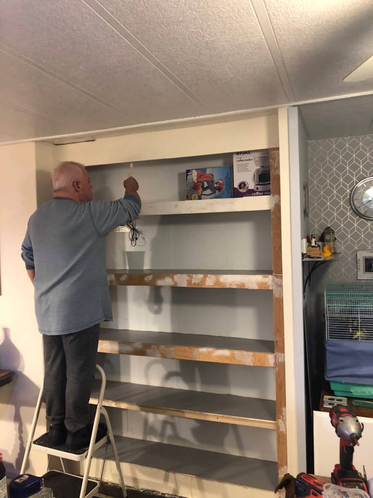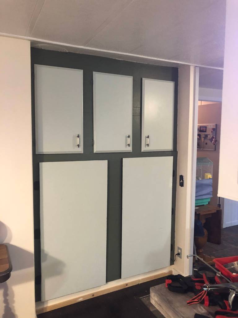 Alex has finished the kitchen off. We had a section of the kitchen that was almost like an indent as seen below. We originally put a china hutch in there as you can see.