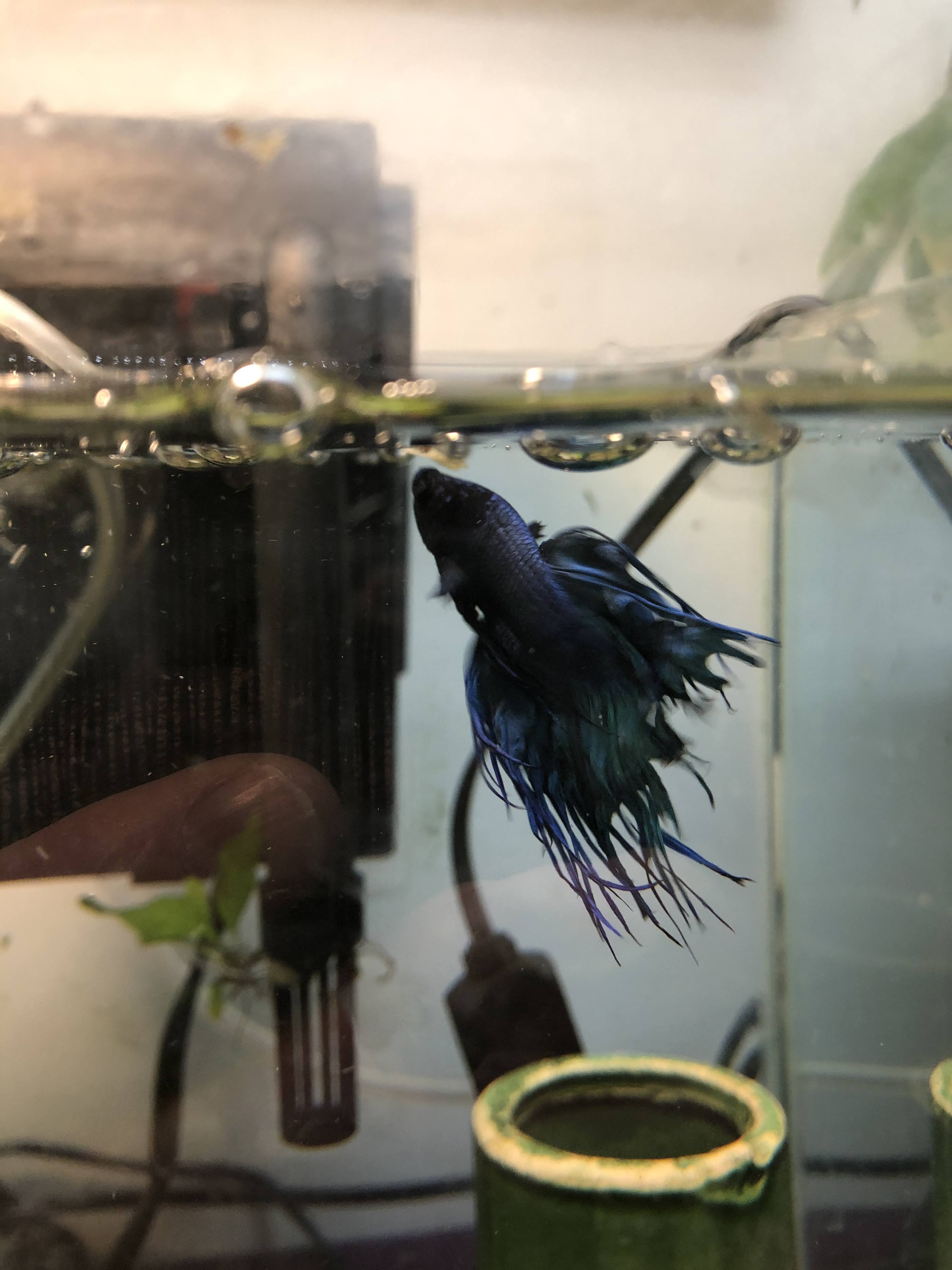 However, the joy was short-lived! About three weeks ago, I came in to work and found my aquarium was damaged and water was leaking EVERYWHERE. So, off to the local pet store to buy a new home for Blue (for lack of a better name for him)