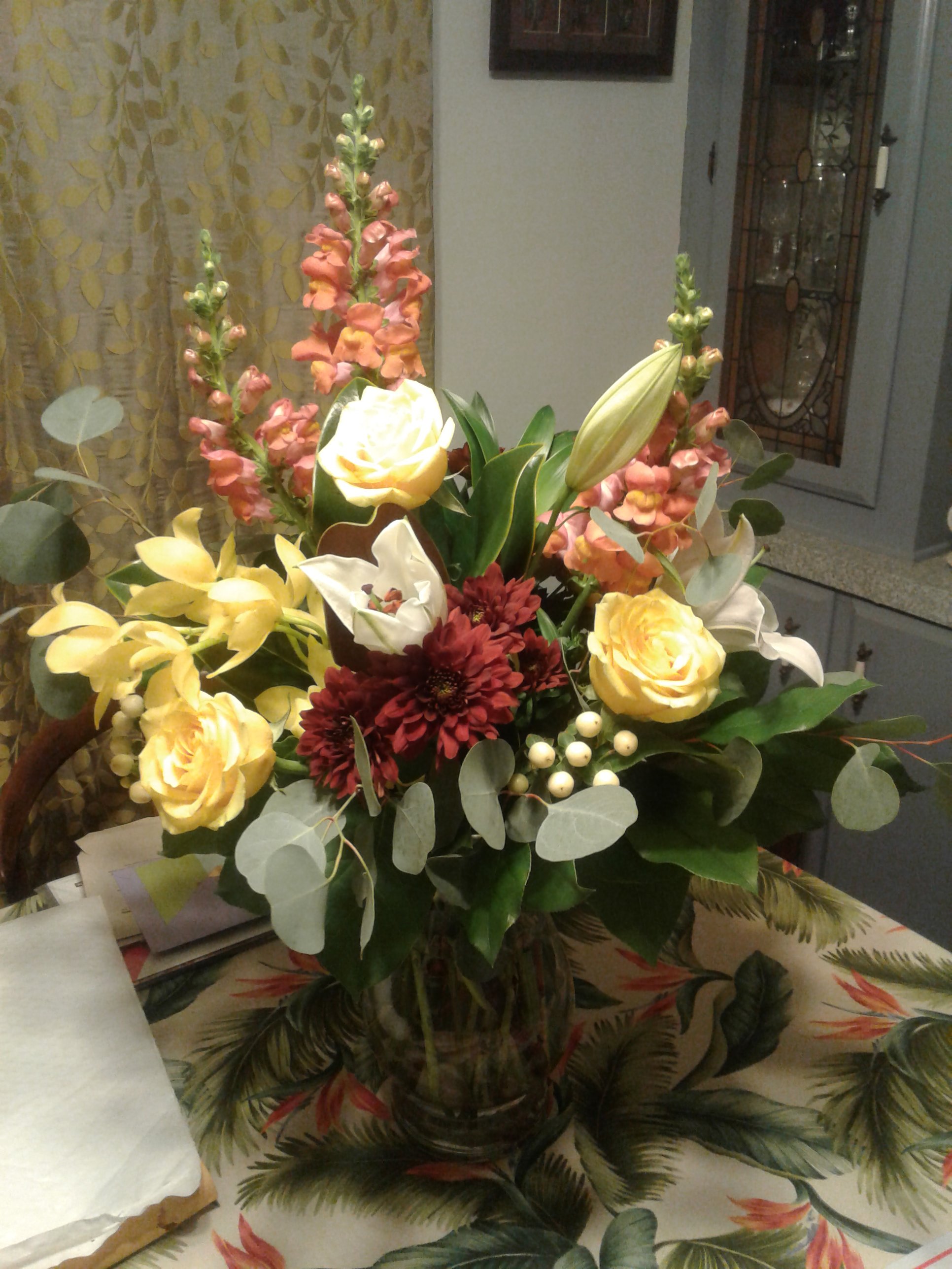 I left the house around 11 and headed off to the nursing home to see Mom. I stopped at a grocery store and bought her some chocolate bars and the bunches of tulips (Mom’s favourites).