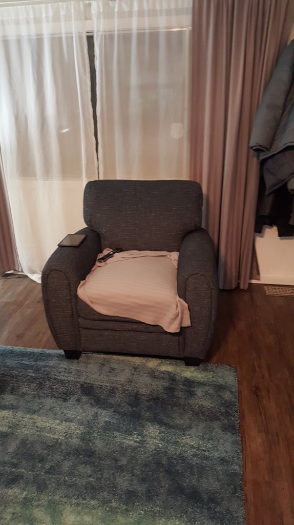 I managed to get into the basement bedroom at my friend’s place without disturbing anyone. Getting ready for bed was a bit of a challenge as my back was starting to seize up again. I didn’t take any painkillers or muscle relaxants prior to getting on the plane as I didn’t want to impair my driving skills when I got to Edmonton.