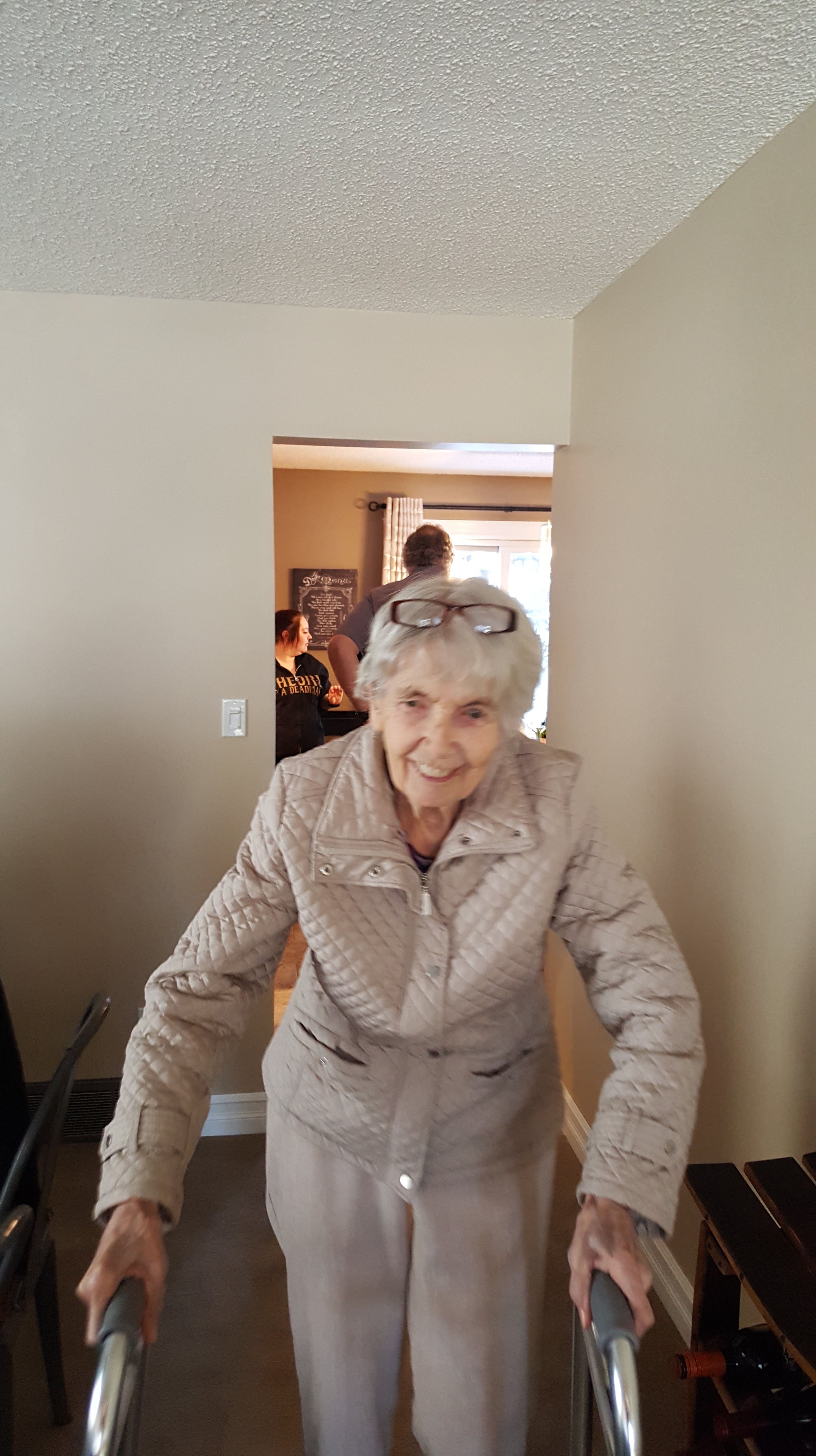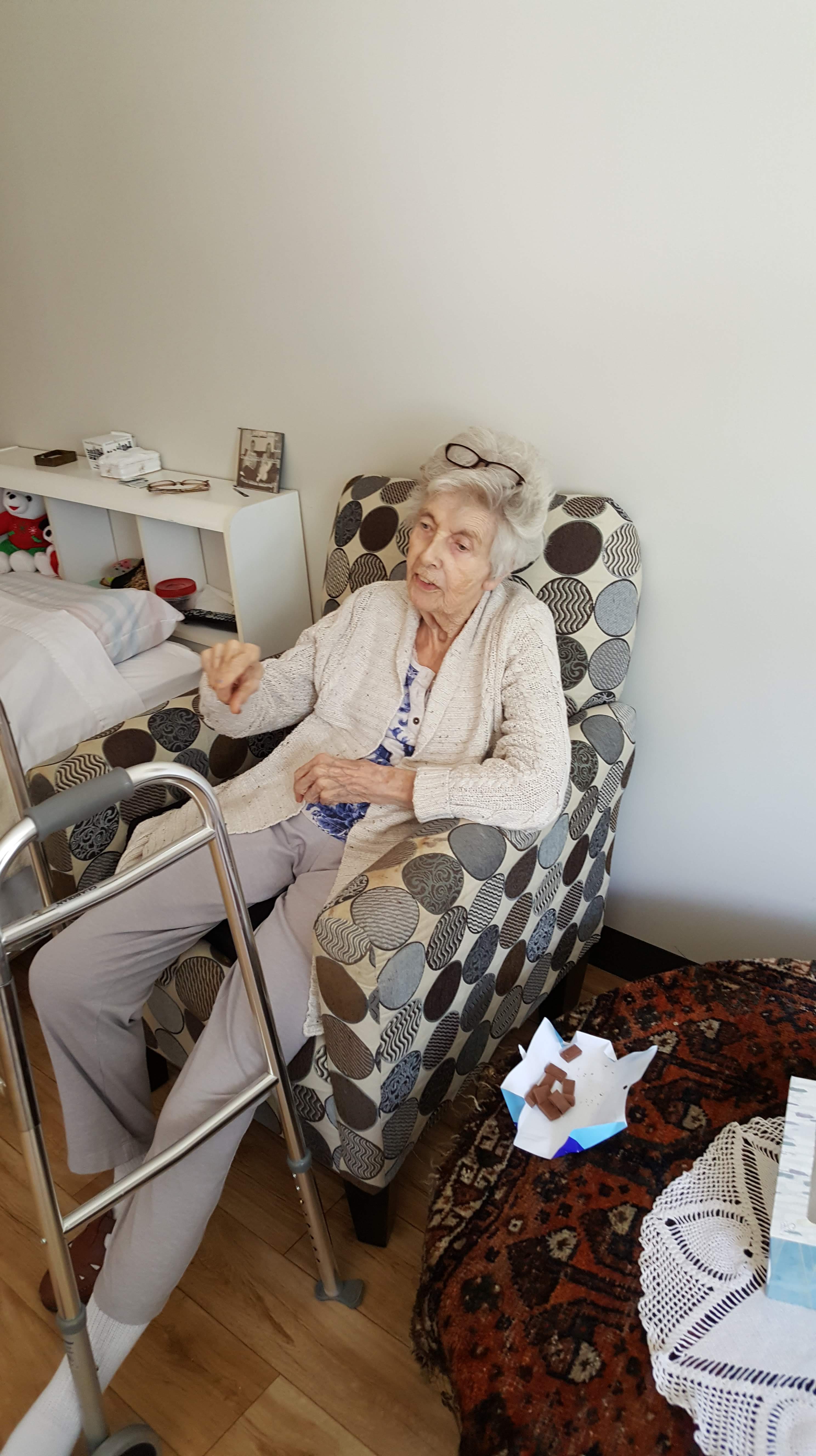 Mom’s face lit up as soon as she saw me and Kathy. Her day was made!