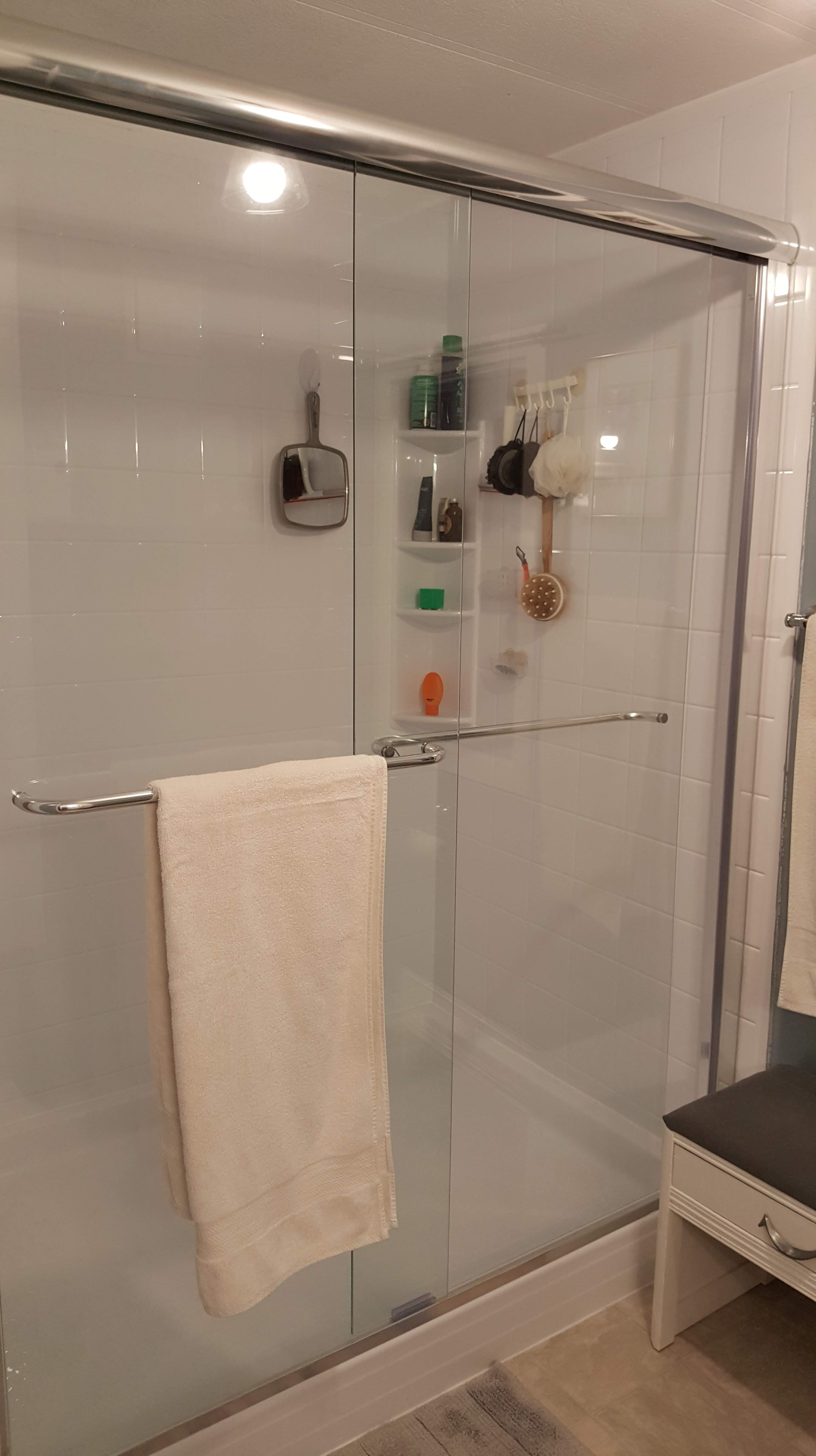 So, after almost 6 years of living in our house, we have FINALLY managed to finish our master bathroom. We ripped out the old shower – a glorified phone booth sized shower that I could only stand and spin in. Washing anything below the waist was an exercise in futility.